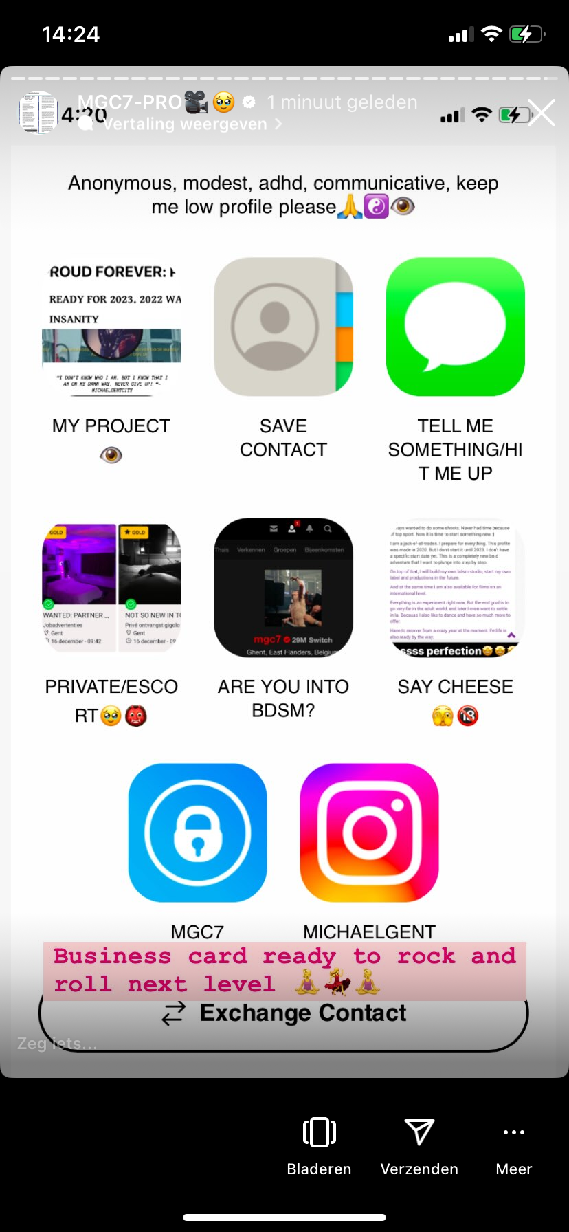 This screenshot right here is my most advanced technology that I have to connect next level. I was the past 10 years low profile for multiple reasons. I still rather to stay anonymous because I need laser sharp focus. In theory millions of people witnessed my energy already in nightlife or in the gym. Or in challenge x. But I never shared my vision and plans. Never my socials. Anyways. I don’t know when I will use this next gen card. But I definitely need my partner in crime, same like minded people, sponsors or whatever. This card will give me people in no time. But I need quality and not quantity. This vision is freaking epic. But insane at the same time. I always love to challenge myself you know. It would be epic if people gift the tools that I need. Or share knowledge and ideas. Or to find sponsors. People that want to boost me up. I always shared to others you know. I knew that karma will strike triple hard one day. I created already an sponsor me page. An Amazon wishlist etc. Because damn. Everyone will benefit from it in the long run. This house can become super legendary. Anyways. If you are intrigued by this passionated project or my life in general then feel free to [ghost] follow me on my Instagram account. In 2022 I had way too much exposure. Over 250 000 monthly views/40 000 unique ghost followers because of my nightlife marathon 2.00 challenge. I never shared this website or my socials. Not even an hashtag. But boy I know how to use marketing. 2028 I said 👁
