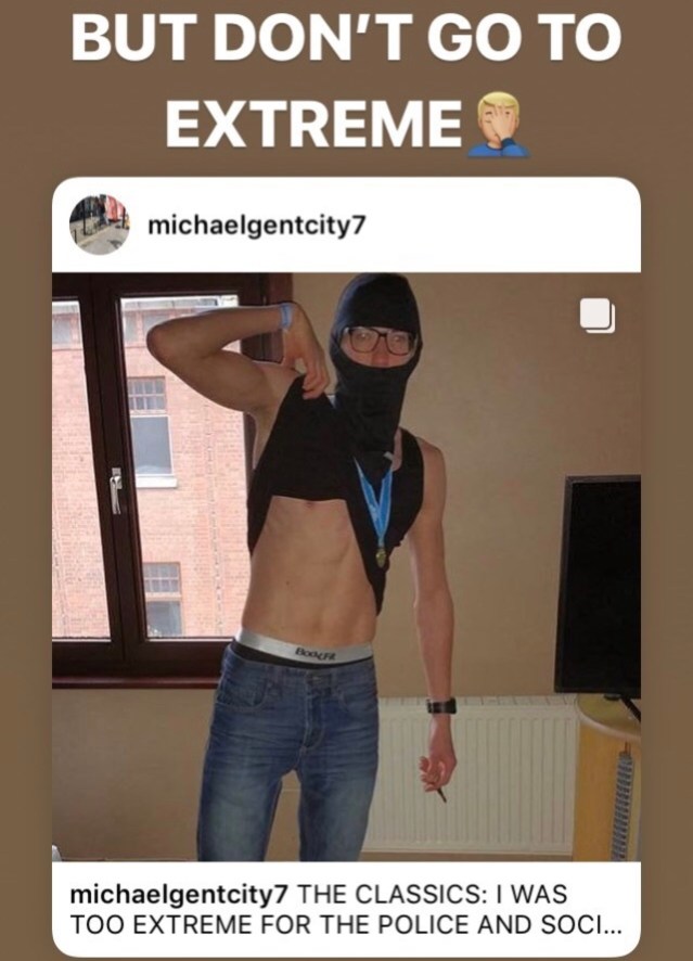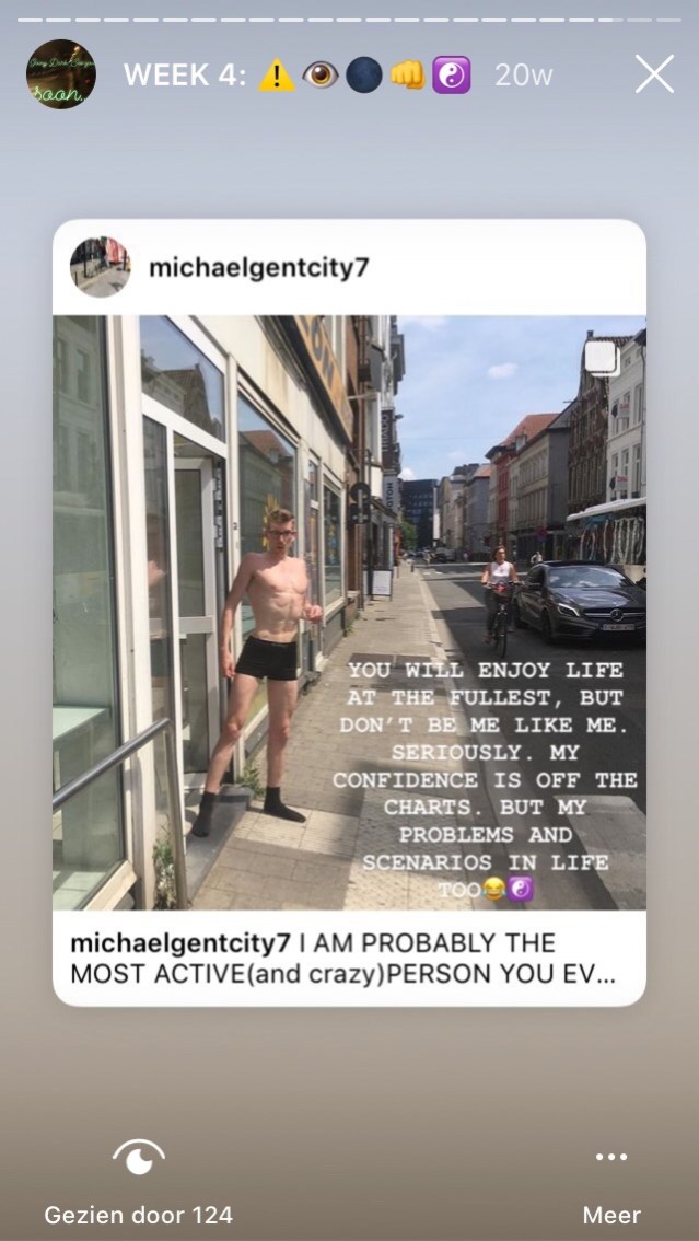 YOU COULD DESCRIBE MY IG AS: “ADHD, OPEN MINDED, A LOT OF ACTIVITY AND VARIETY, SLEEP DEPRIVATION, PARTY ANIMAL, ENTERTAINER TO SLUT, SHAMELESS TO CRAZY FUCKER. I DON’T KNOW WHO I AM. I JUST DO AND SHARE.”